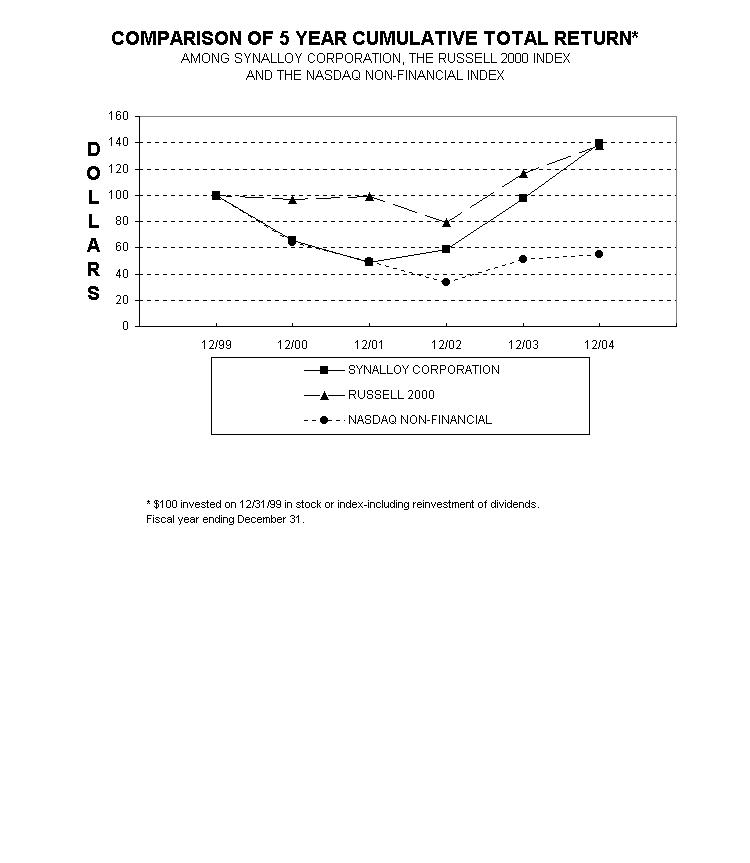 The Company's Annual Report to Stockholders including Form 10-K for the year ended January 1, 2005 (2004 fiscal year-end), as filed with the Securities and Exchange Commission, accompanies this Proxy Statement. Copies of exhibits to the Form 10-K will be provided upon written request to Cheryl C. Carter, Secretary, Synalloy Corporation, Post Office Box 5627, Spartanburg, South Carolina 29304 at a charge of $.10 per page. Copies of the Form 10-K and exhibits may also be downloaded from the Securities and Exchange Commission website at: http://www.sec.gov.