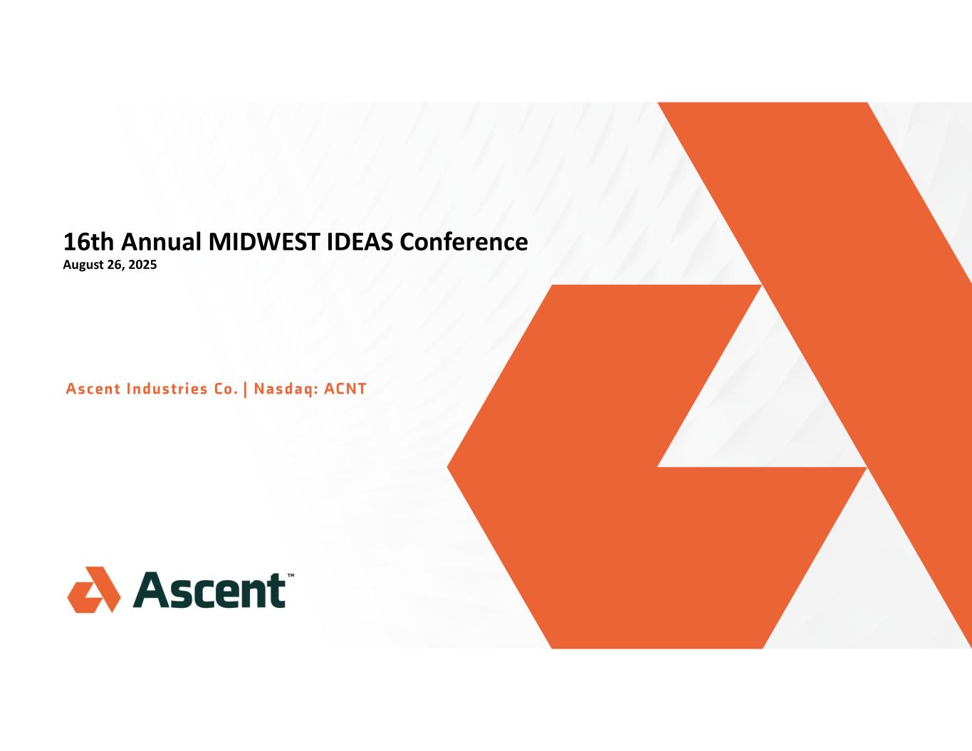16th Annual MIDWEST IDEAS Conference August 26, 2025 Ascent Industr ies Co. | Nasdaq: ACNT
