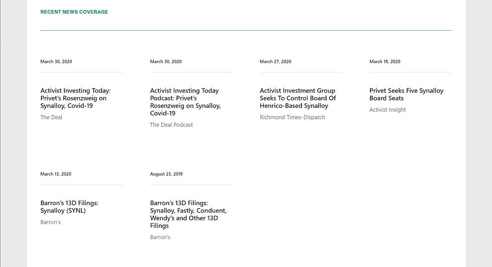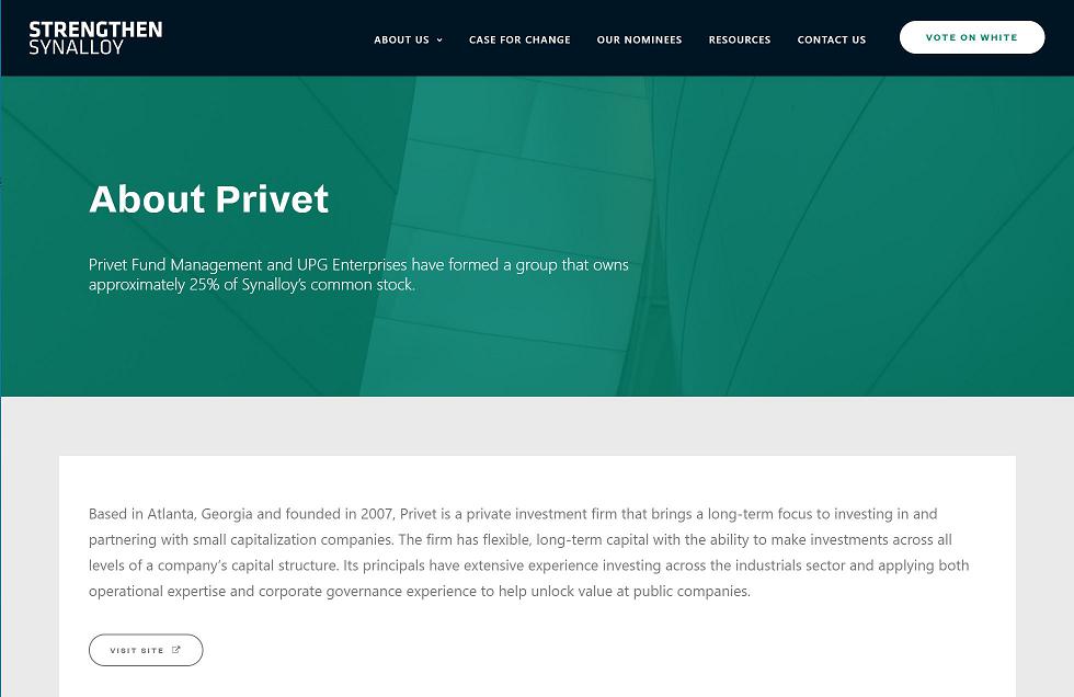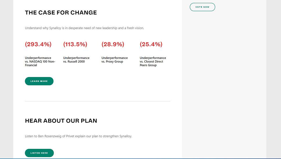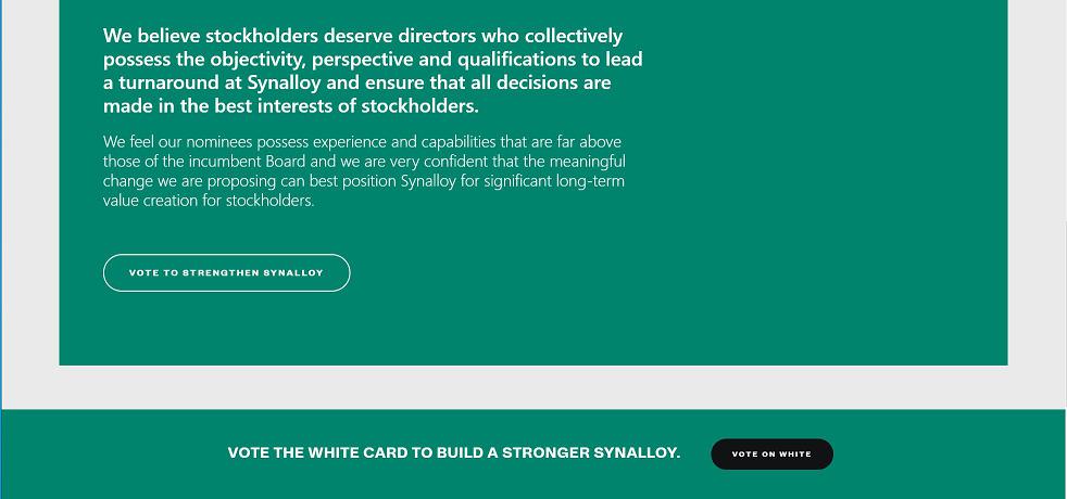We invite all stockholders to learn more about our case for urgent change atop Synalloy at www.StrengthenSynalloy.com.