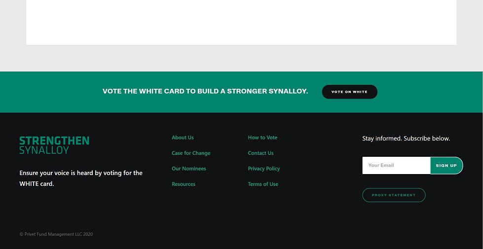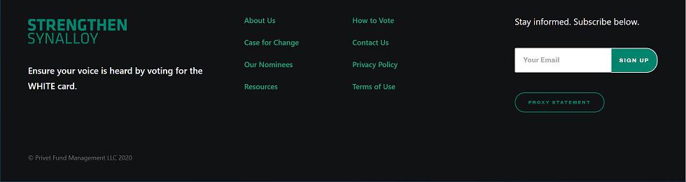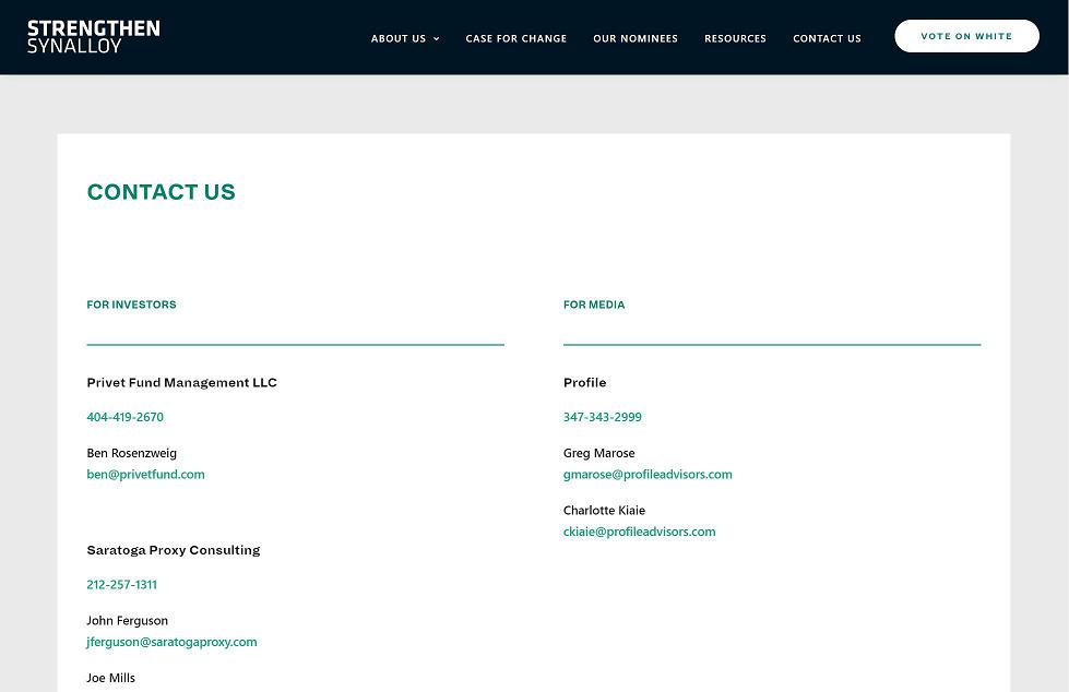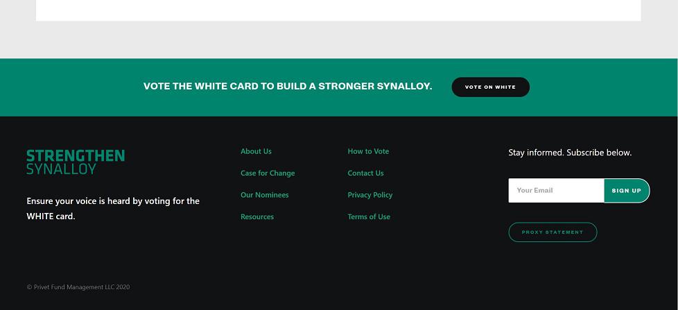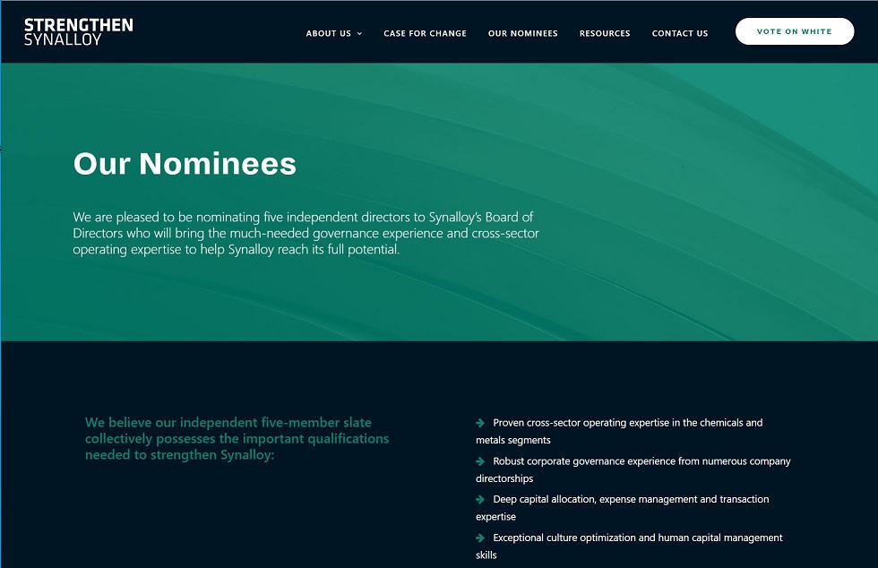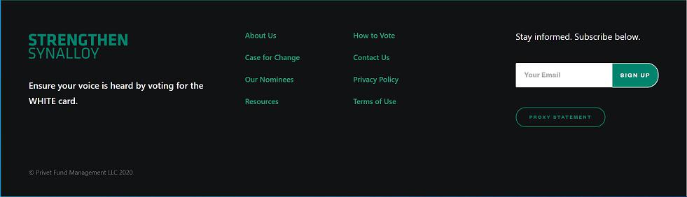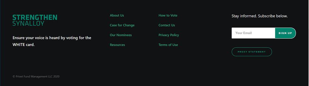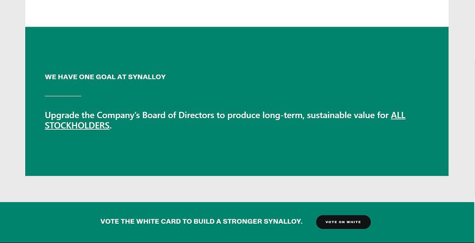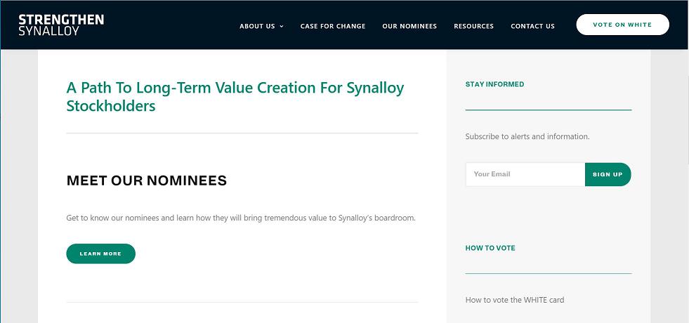 In the days and weeks ahead, stockholders should visit www.StrengthenSynalloy.com to learn more about our case for change and sign up for important updates.