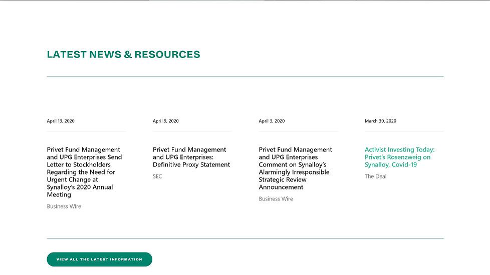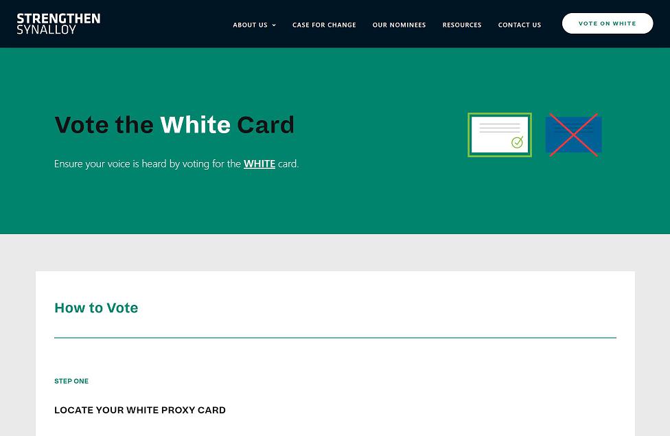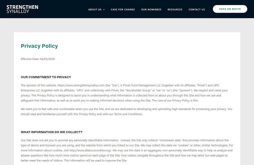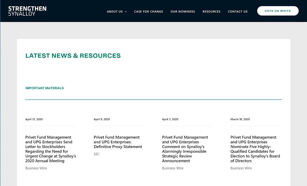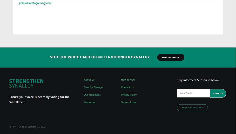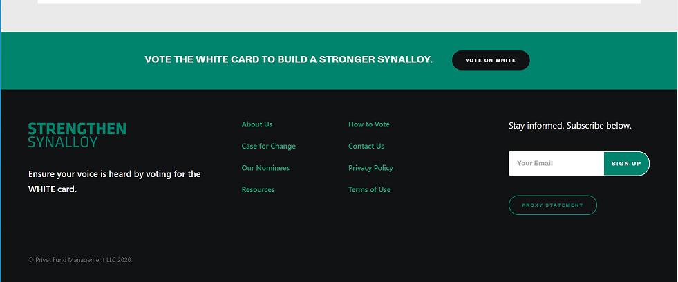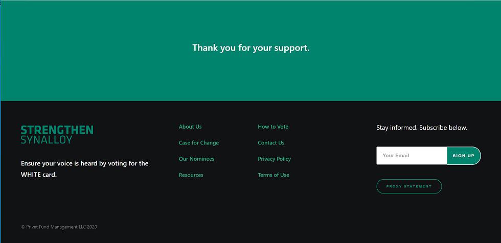 In the days and weeks ahead, stockholders should visit www.StrengthenSynalloy.com to learn more about our case for change and sign up for important updates.