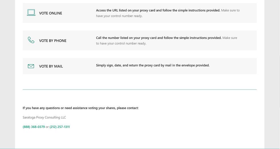 Should you have any questions or need assistance with voting, please contact Saratoga Proxy Consulting LLC at (888) 368-0379 or (212) 257-1311 or by email at info@saratogaproxy.com.