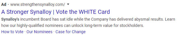 Item 1: On April 14, 2020, the Stockholder Group issued the following Search Engine Marketing advertisement.