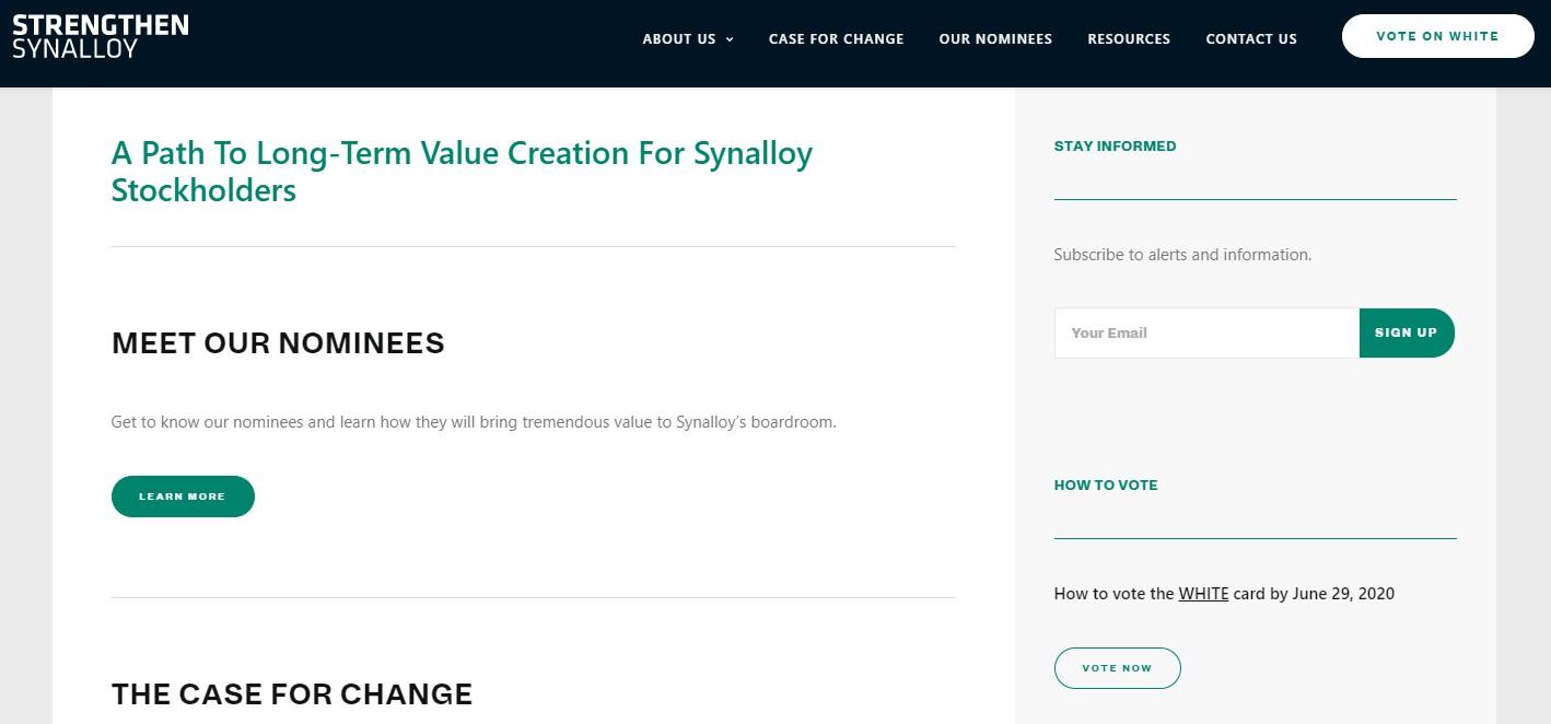 Item 2: On April 24, 2020, the following materials were posted by the Stockholder Group to www.StrengthenSynalloy.com: